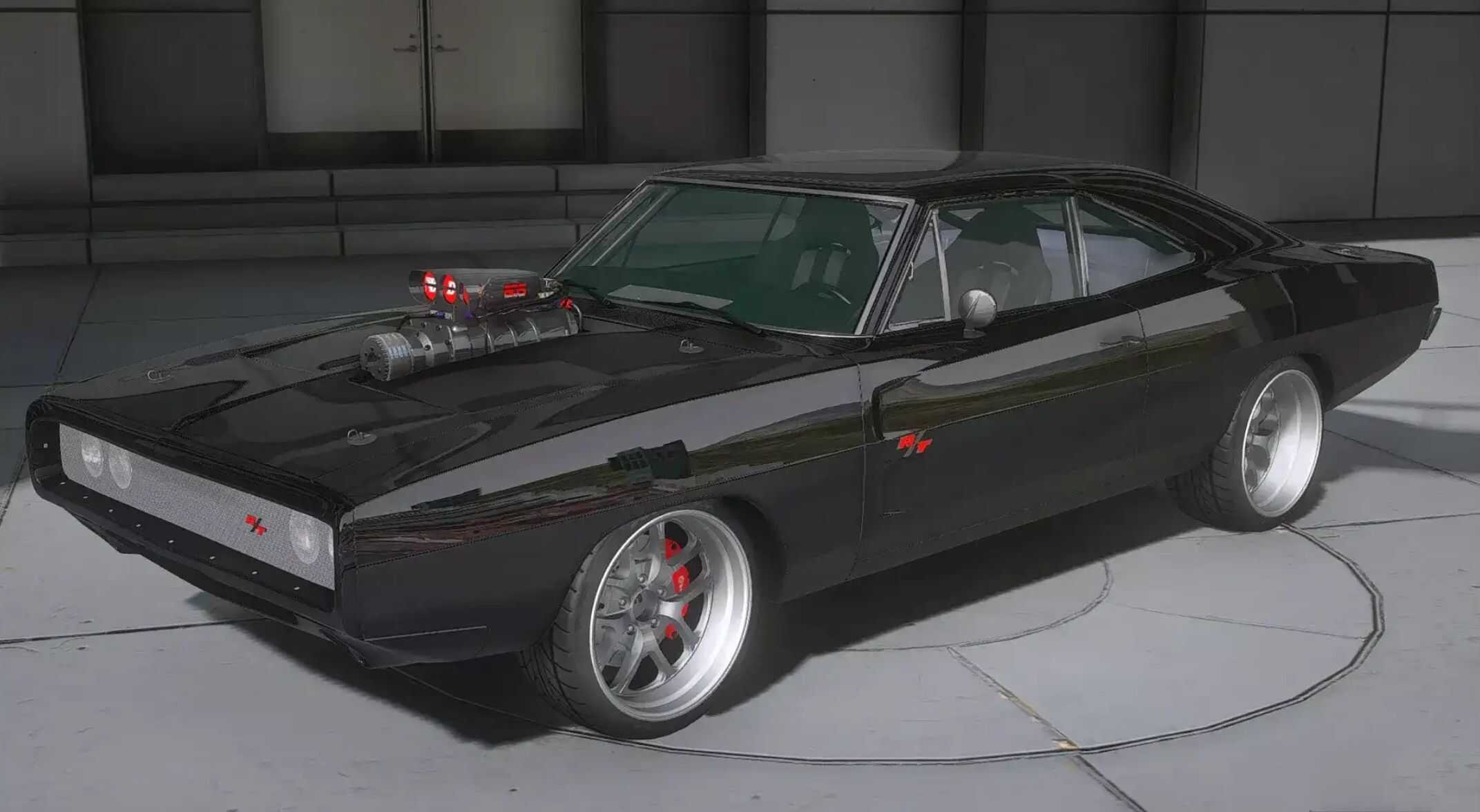 – The long hood with a massive supercharger and chrome elements gives the 1970 Dodge Charger R/T an aggressive and racing look.