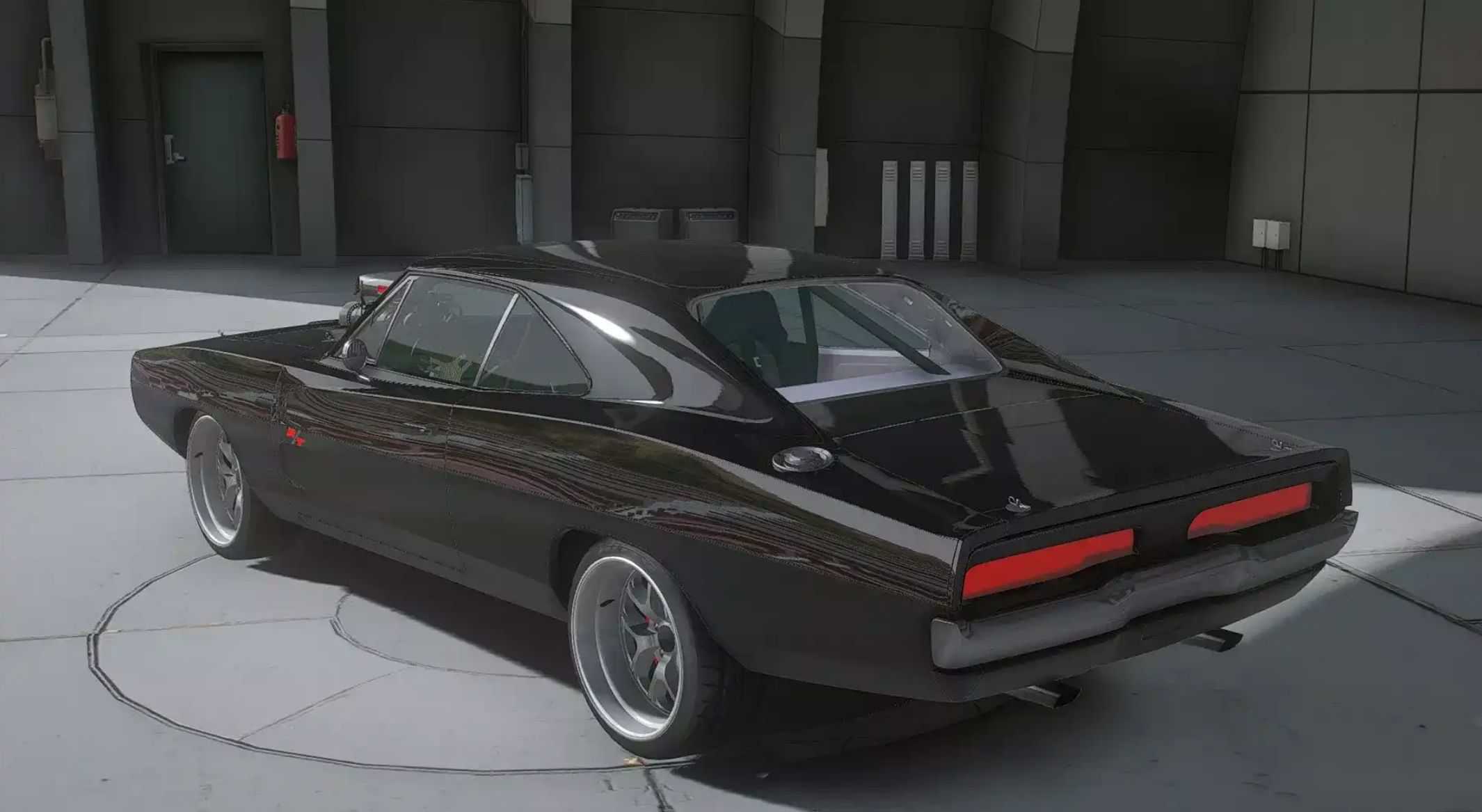 – The black rear bumper with simple lines maintains the classic muscle car style.
