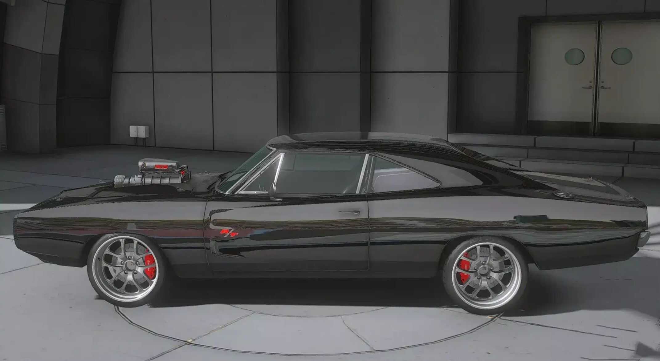 – The long hood with a massive supercharger and chrome elements gives the 1970 Dodge Charger R/T an aggressive and racing look.