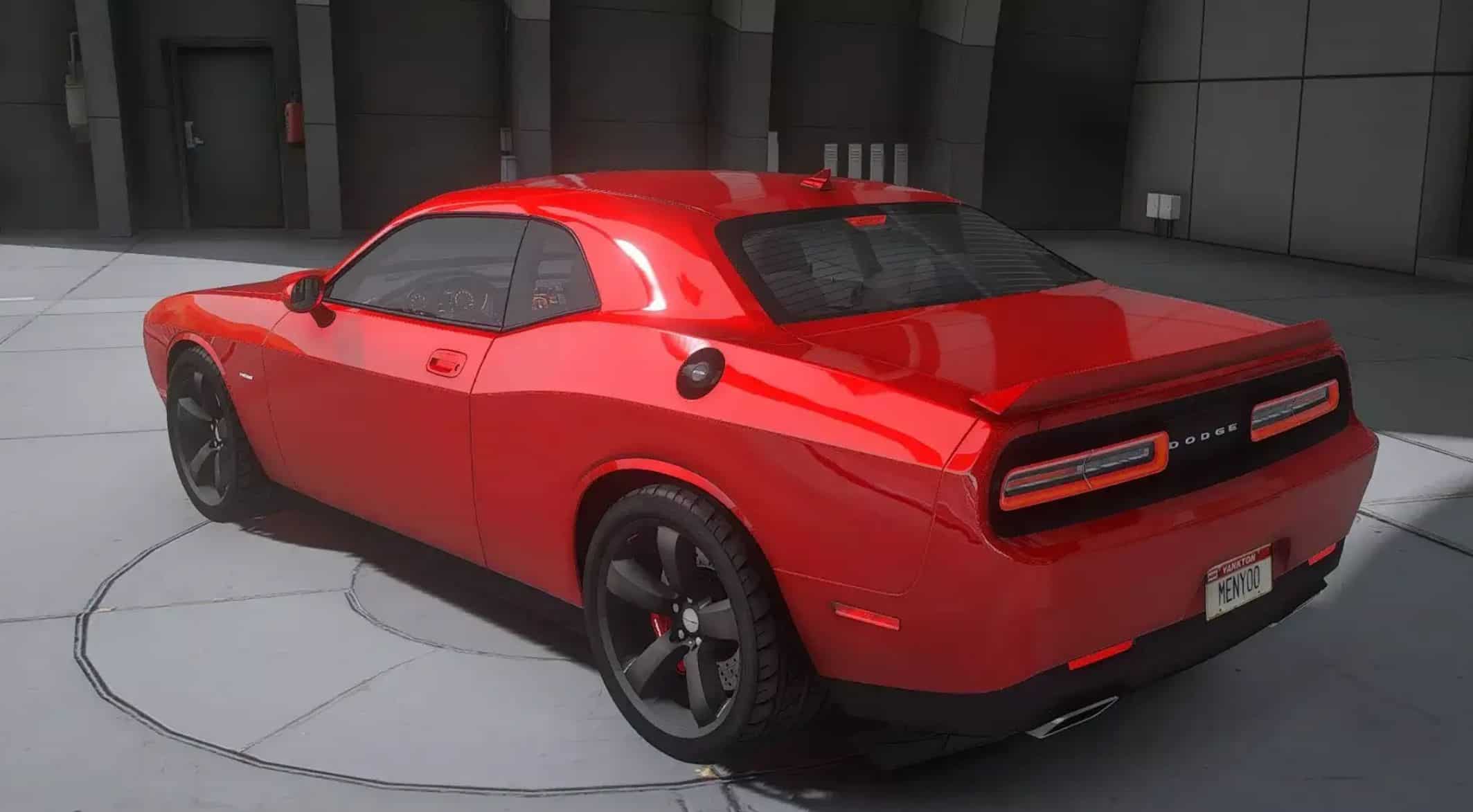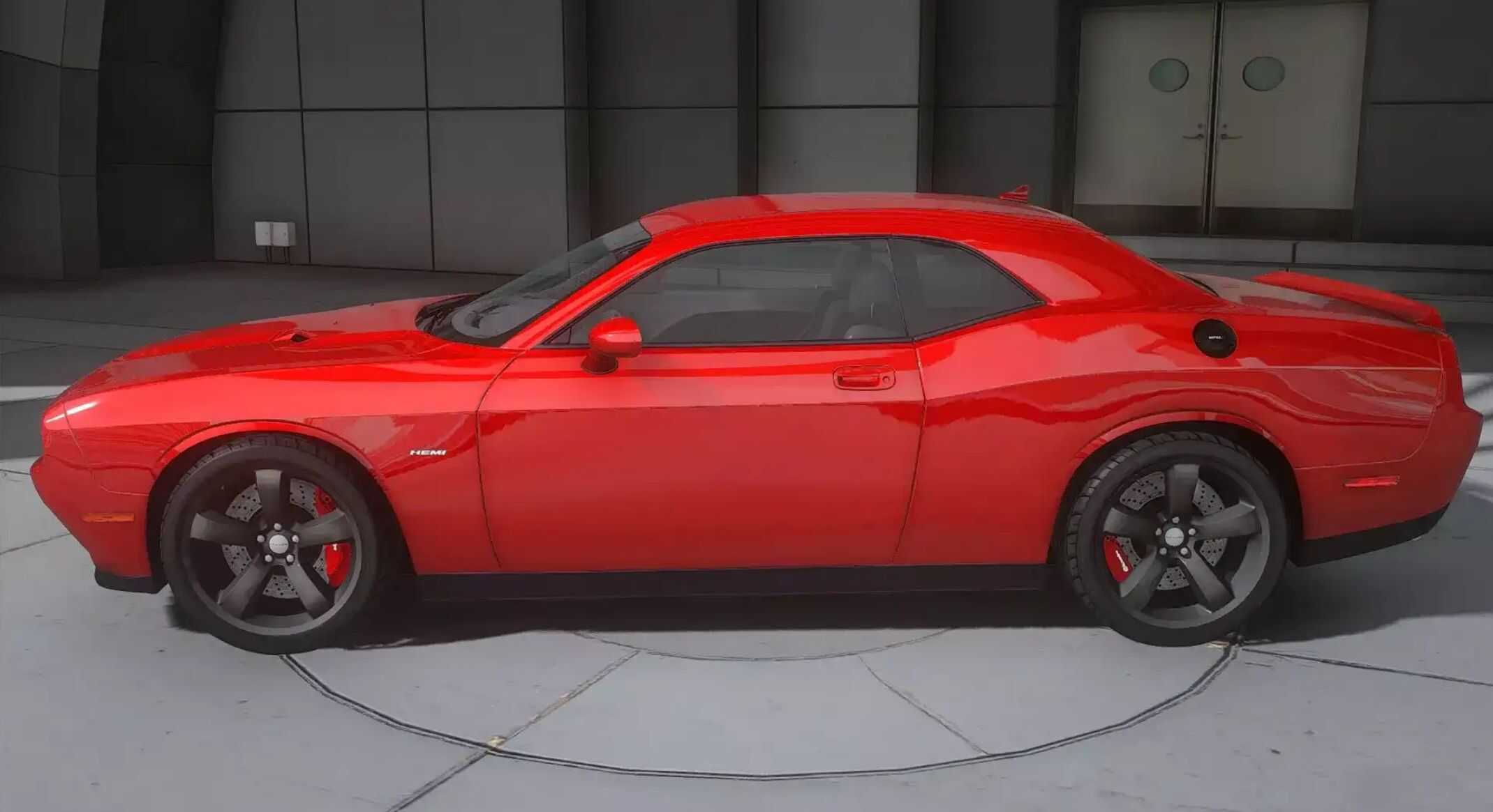 The Dodge logo on the trunk lid and the minimalist design highlight the heritage of American muscle cars.