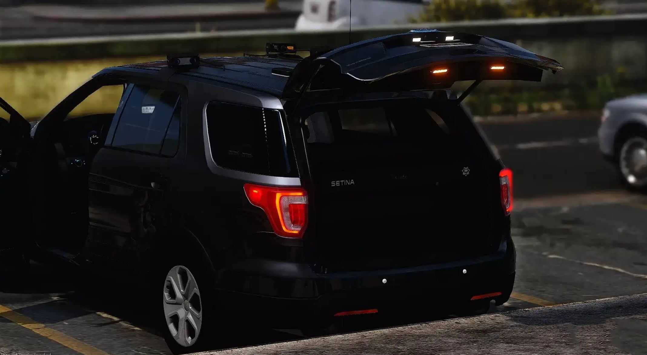 Hidden emergency lights are integrated into the rear window and bumper, allowing the vehicle to be used in both patrol and undercover modes.