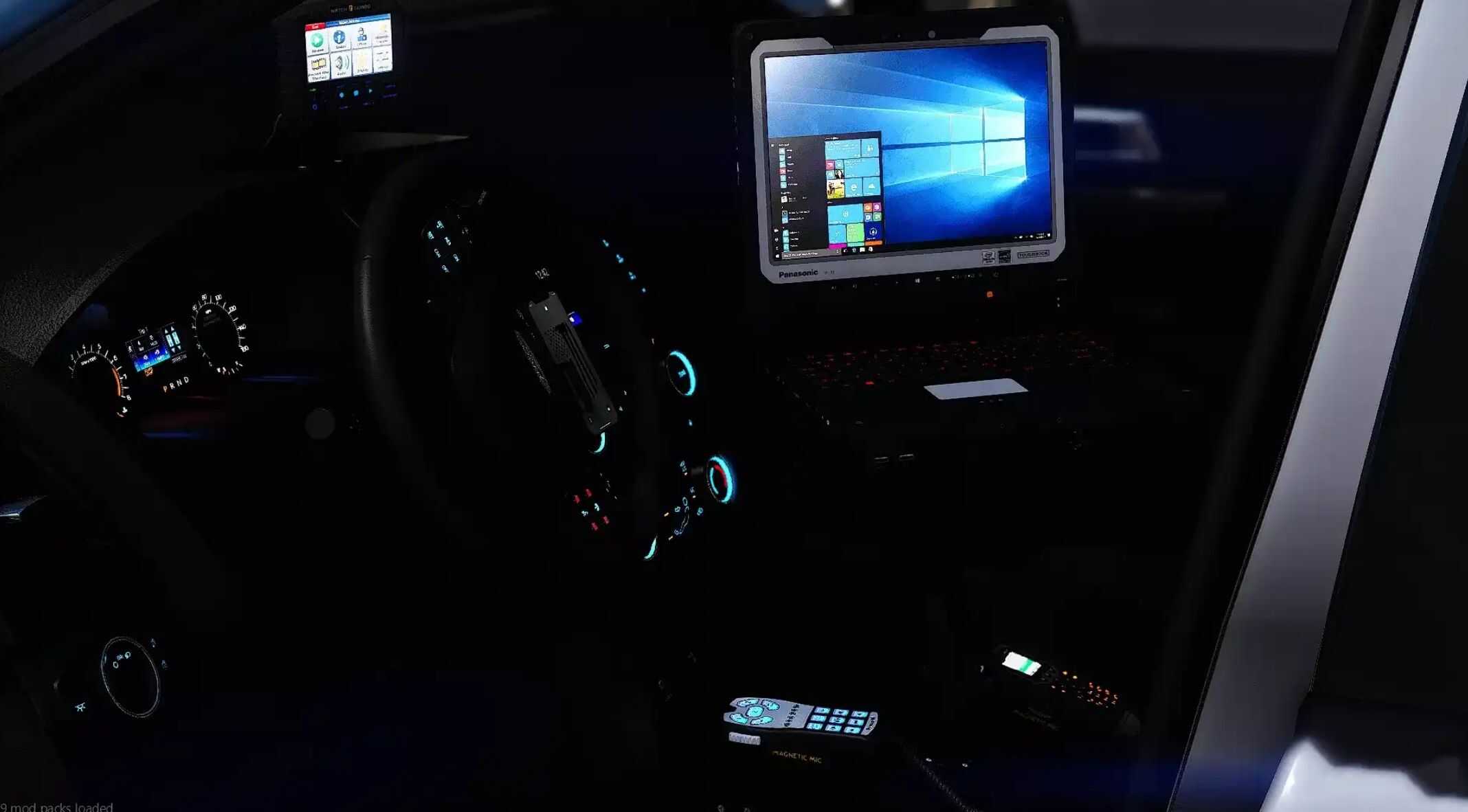 The recognizable grille with a large Ford logo and the “INTERCEPTOR” inscription along the edge of the hood emphasizes the vehicle’s official purpose.