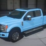 – Chrome side steps and mirrors highlight the premium status of the Super Duty version.