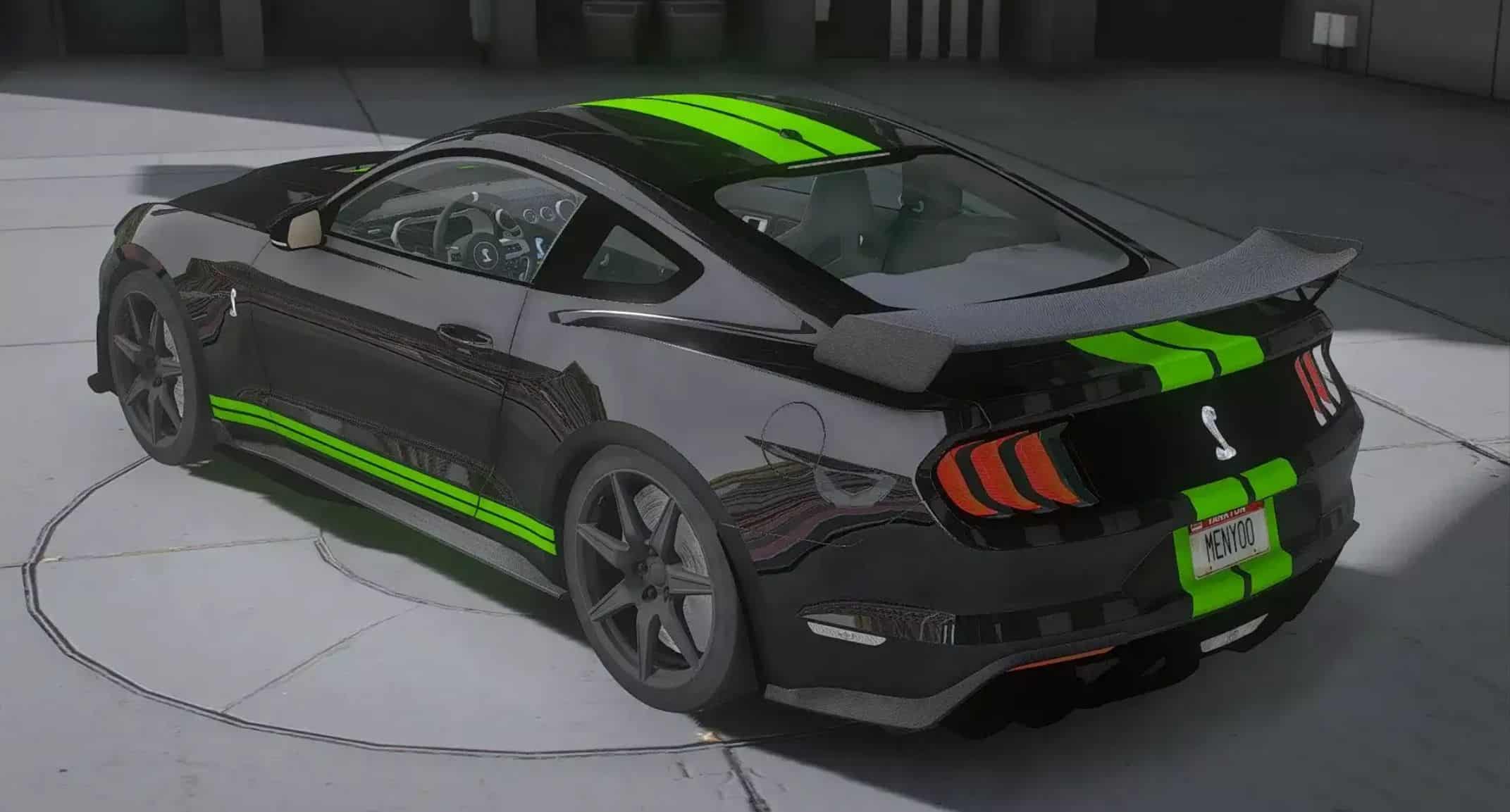 – Shelby and Cobra badges are placed on the front fenders and doors.