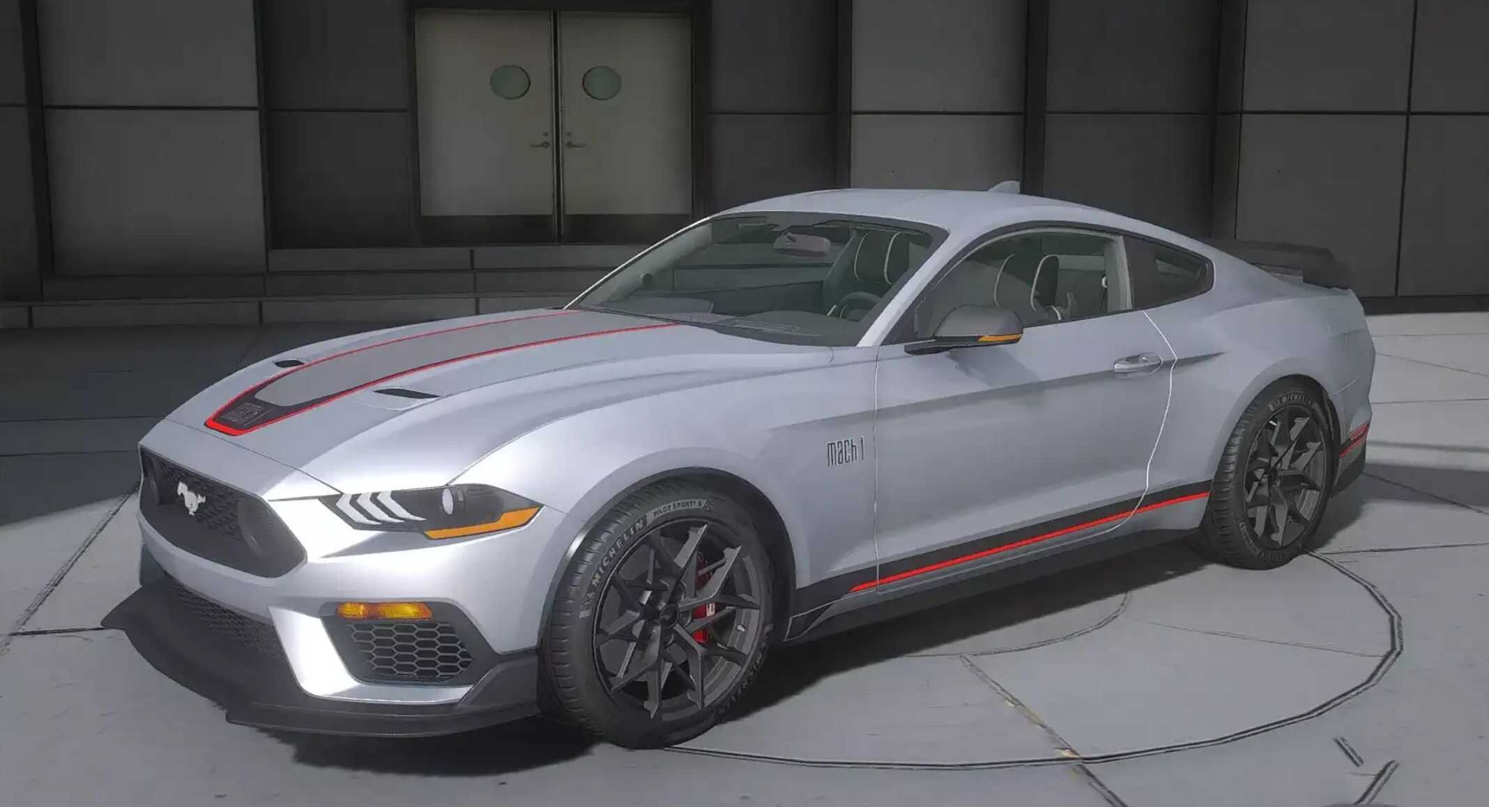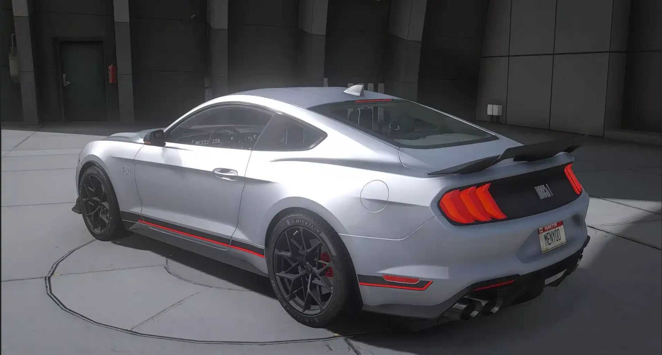 – A black panel with the “Mach 1” inscription and a sporty license plate complete the appearance of this modern muscle car.