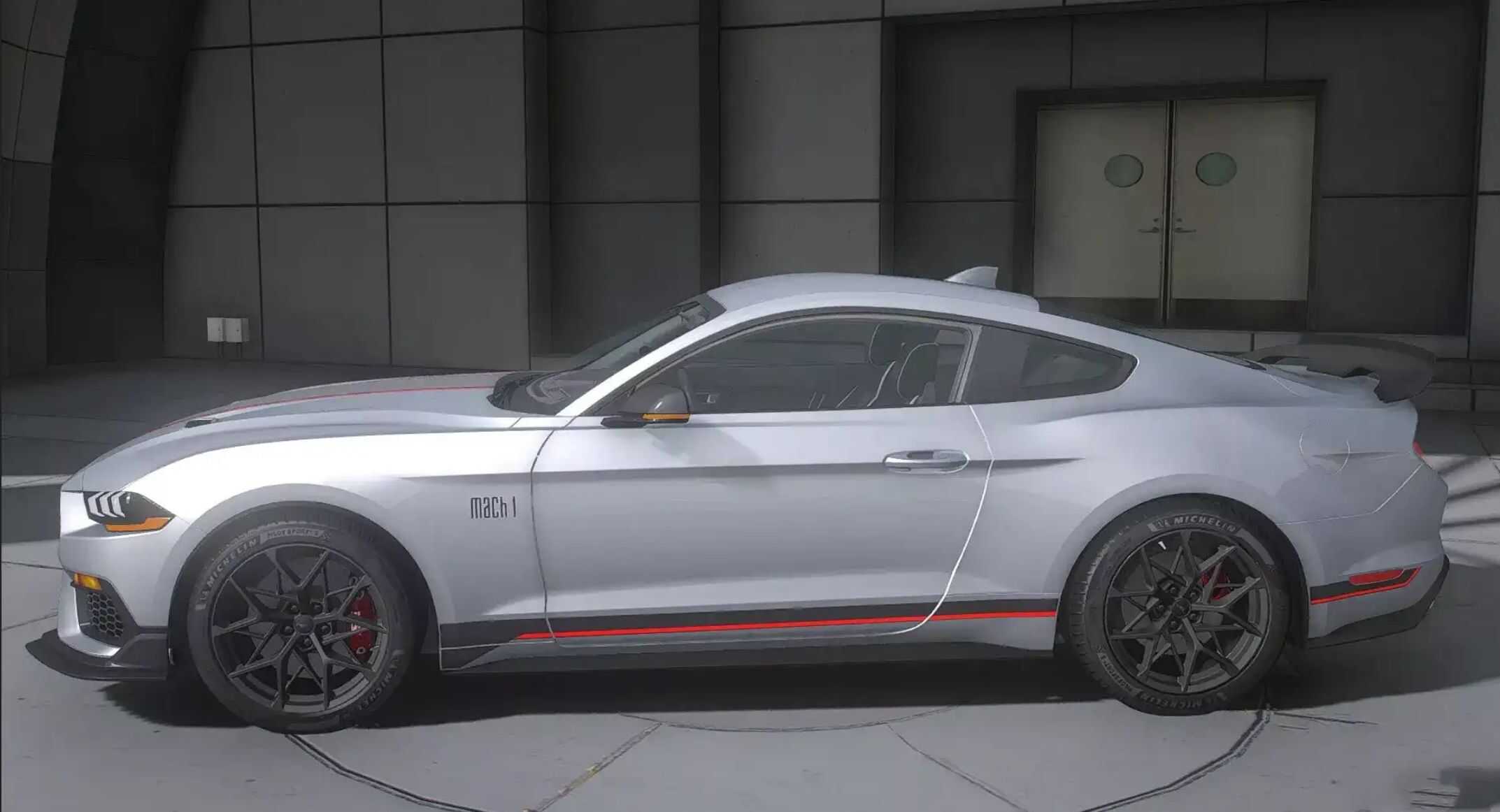 – The “Mach 1” badge on the front fenders emphasizes the uniqueness of the model.