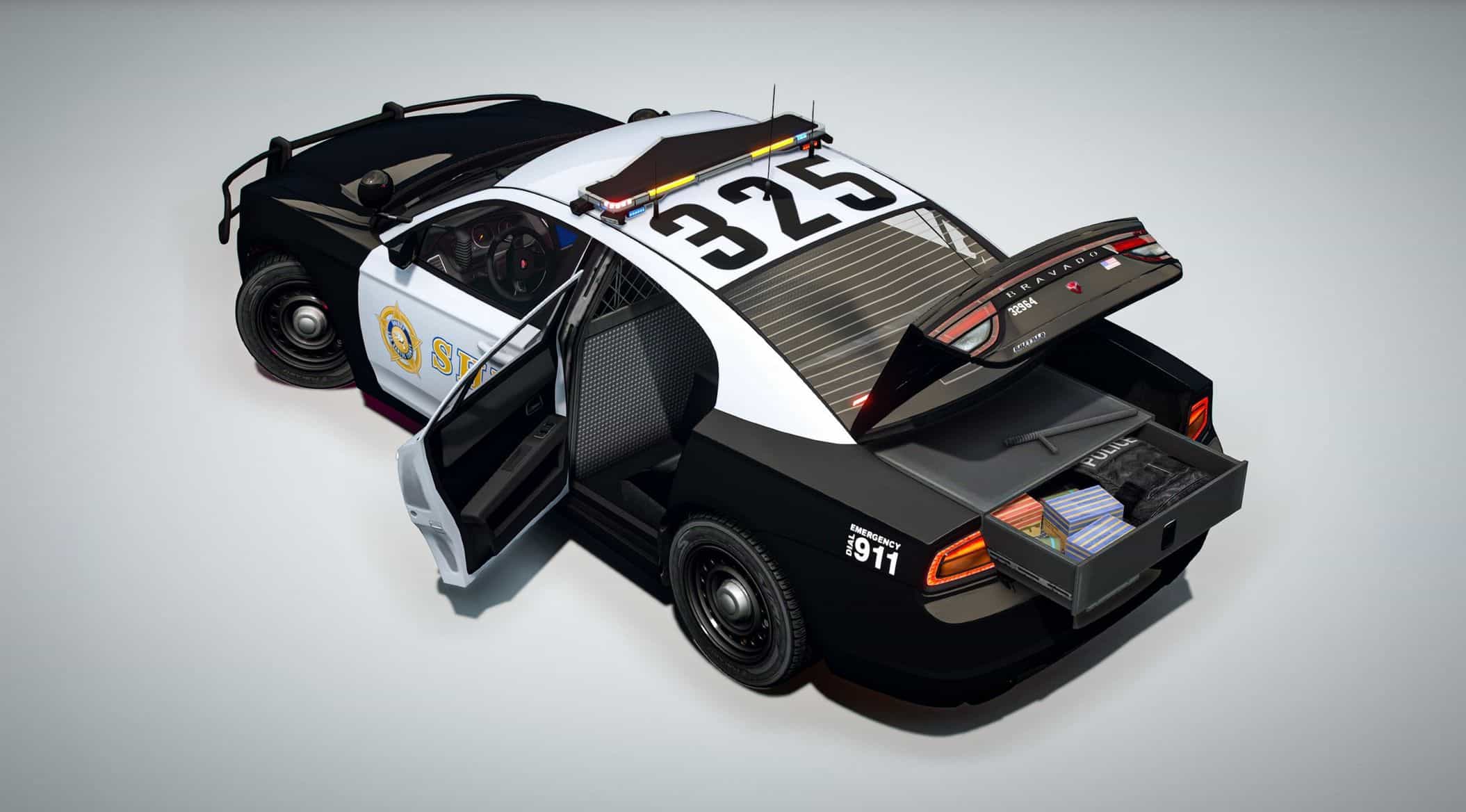 When standard issue cruisers start getting walked by tuned street cars and ego-driven muscle heads, the Bravado Buffalo ST Enforcer rolls in to restore order — loudly. Commissioned after “several” budget meetings and “zero” environmental considerations, this high-performance interceptor takes Bravado’s already aggressive Buffalo ST and gives it a badge, a lightbar, and permission to ruin your day.
