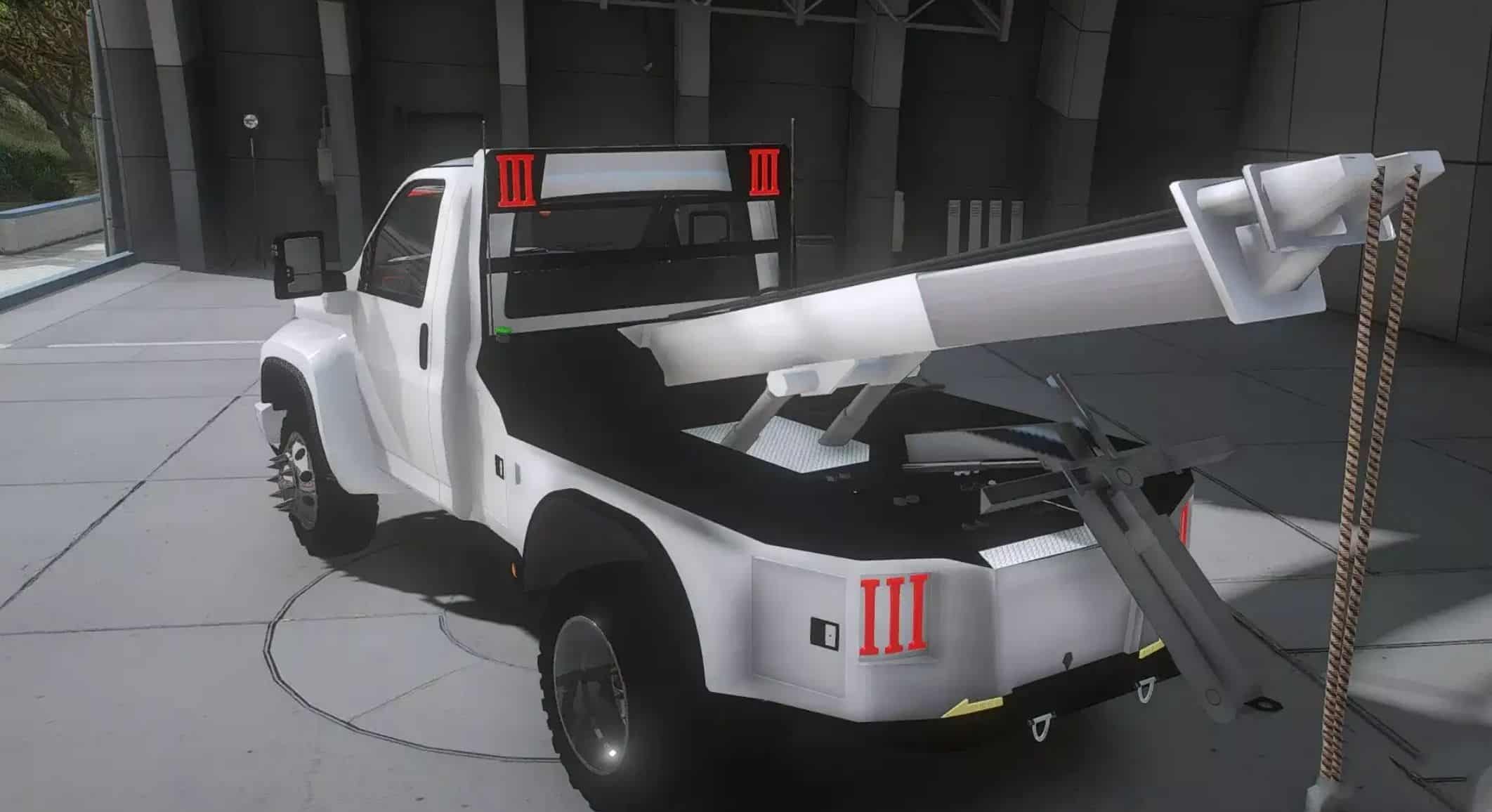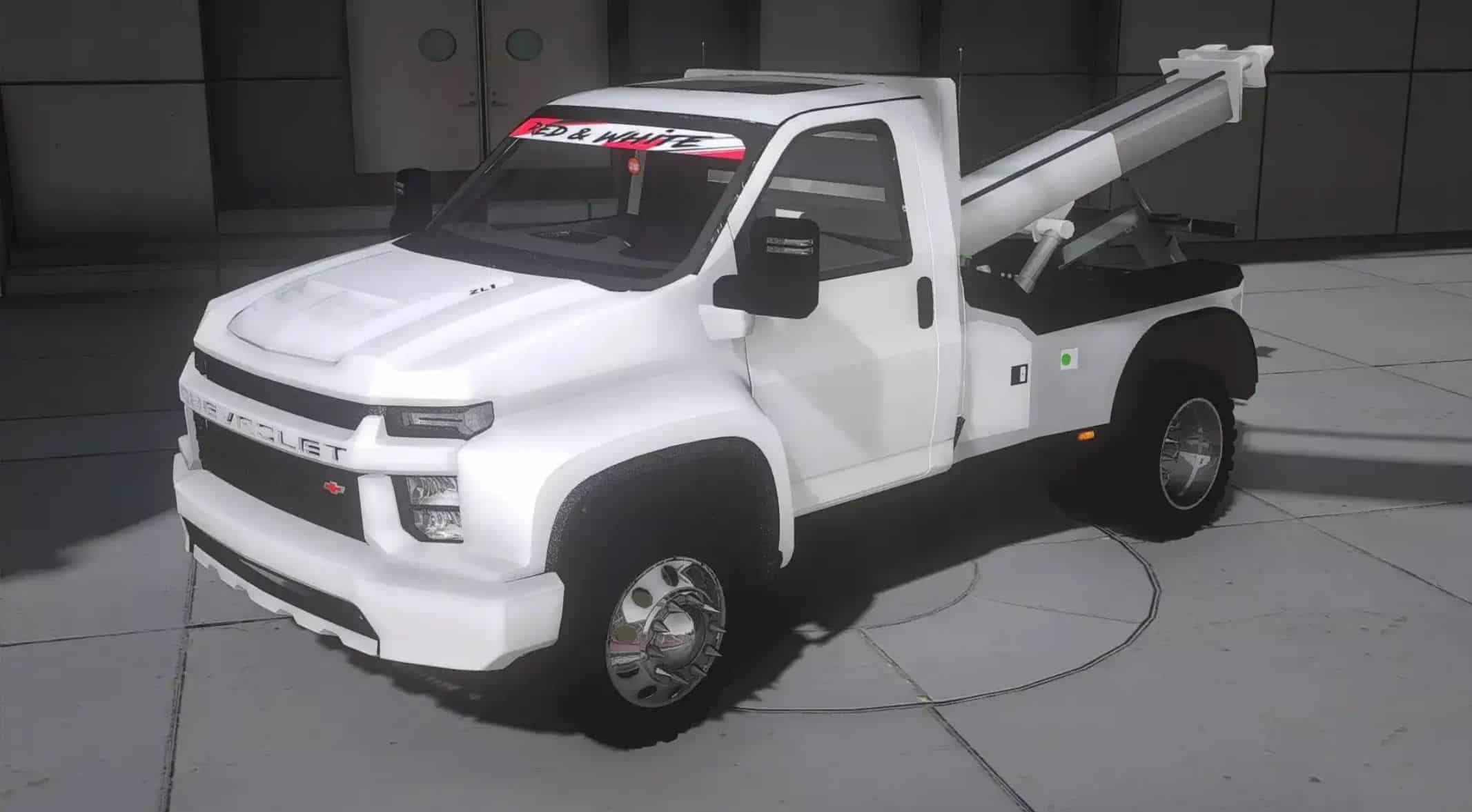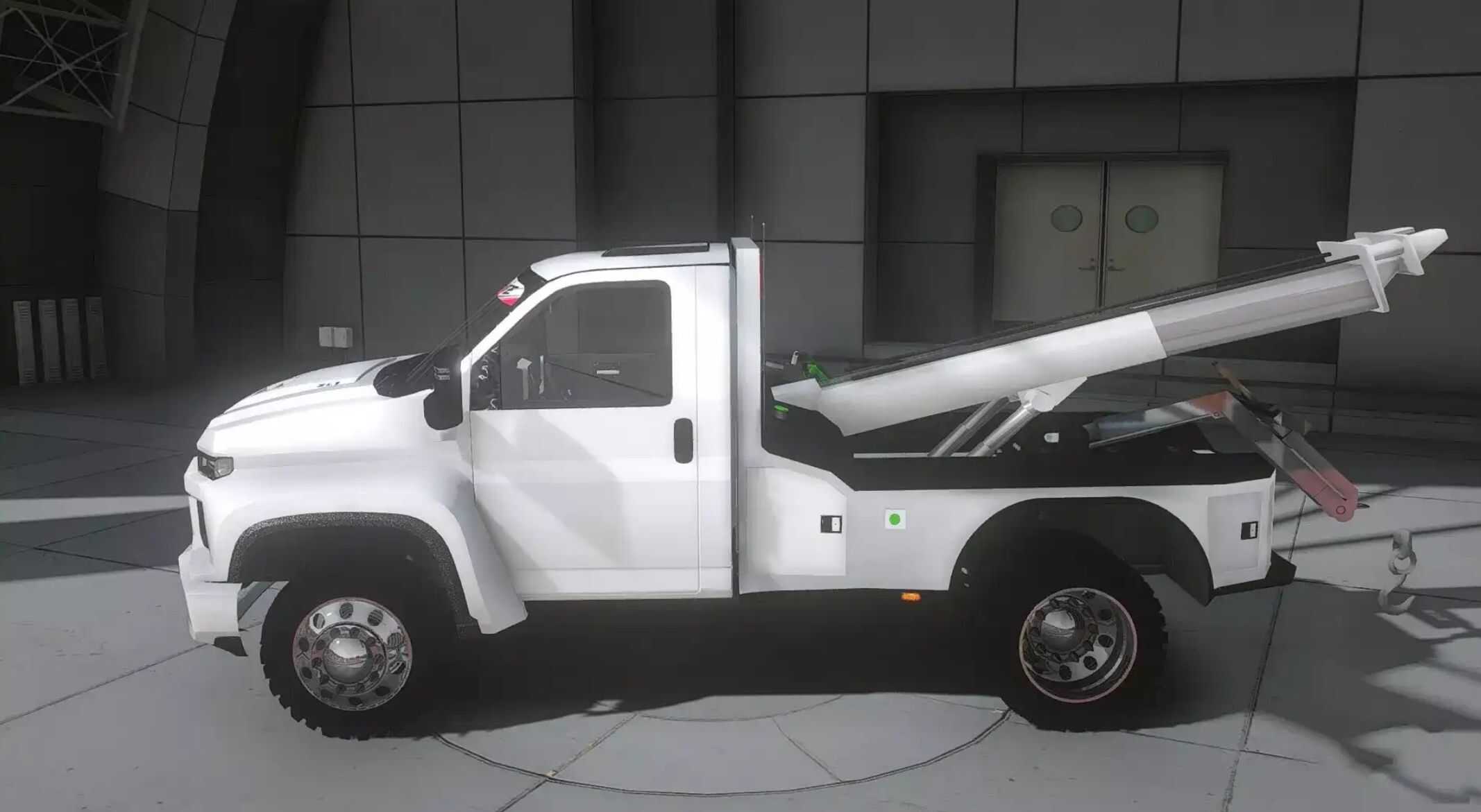 The functional tow platform with a powerful boom and fastening elements sets the Silverado ZL1 Tow apart from regular pickups. Vertical taillights with red accents ensure good visibility at night. Black design elements and integrated toolboxes emphasize the utilitarian and modern style of the vehicle.