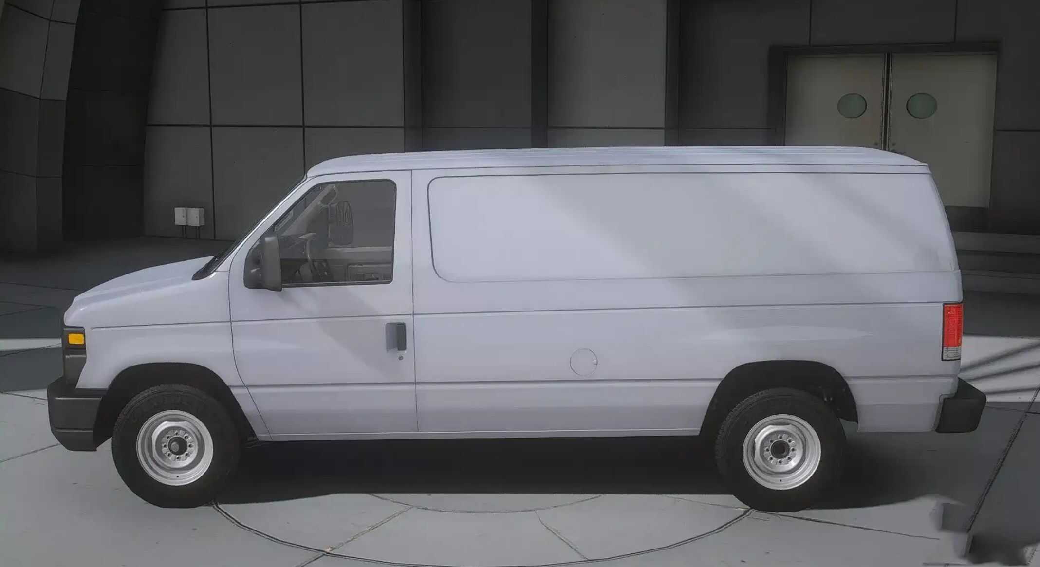 – Branded Ford and E-250 badges on the left door emphasize the model and its place in the commercial vehicle lineup.