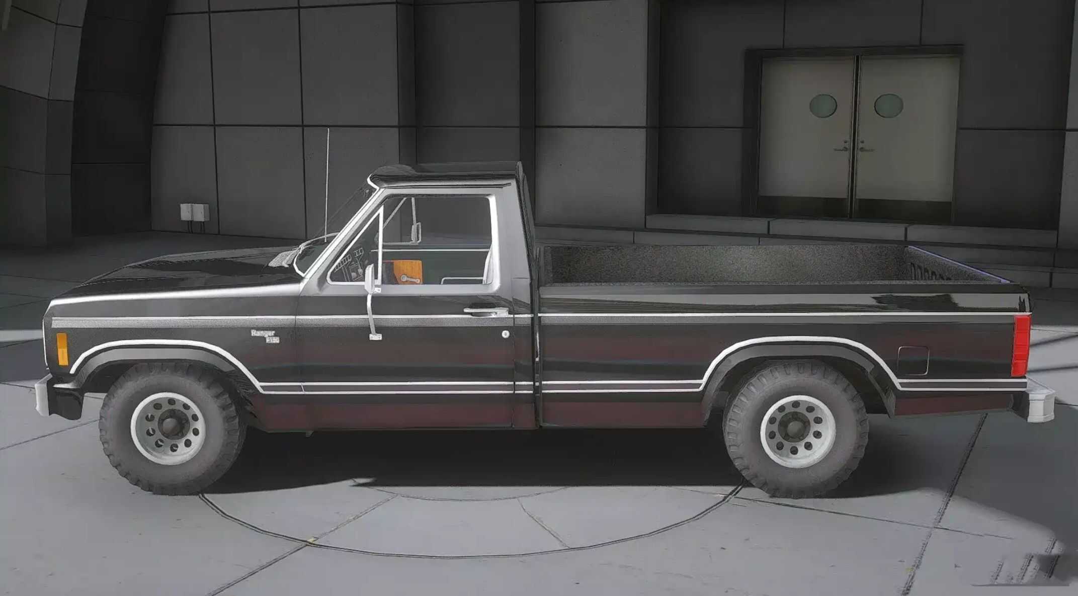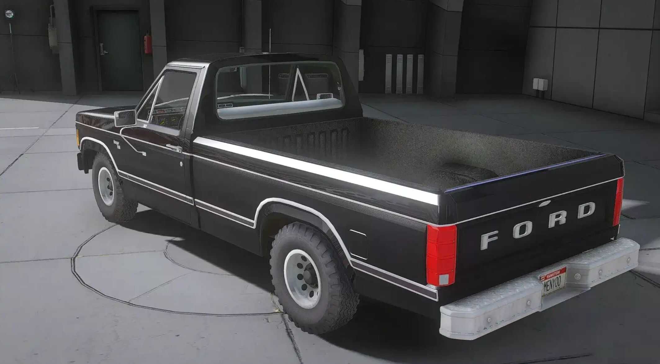 The straight lines along the sides highlight the classic silhouette of an 80s pickup.