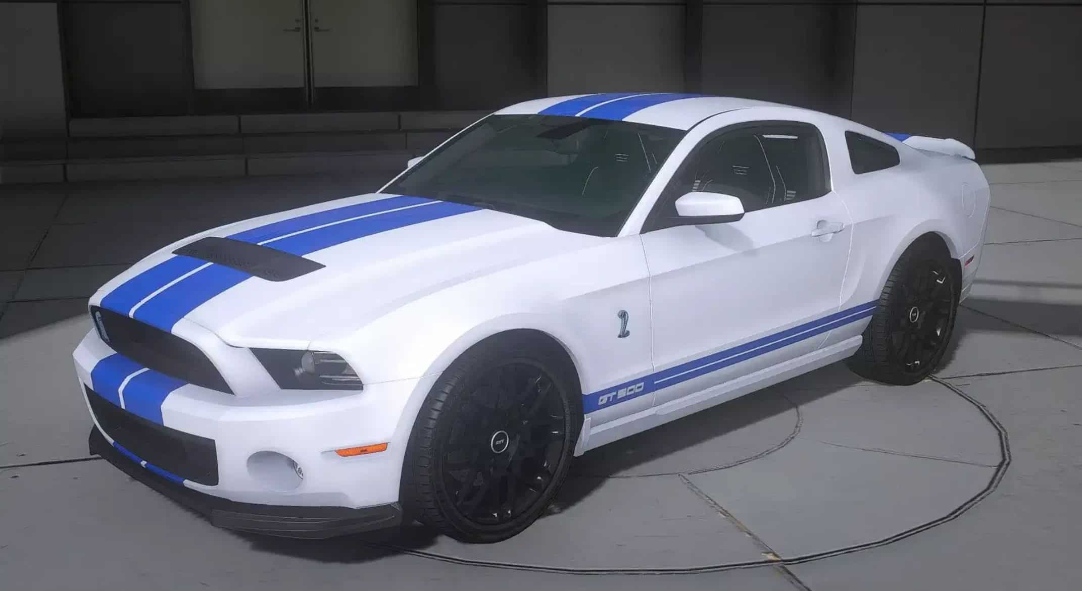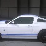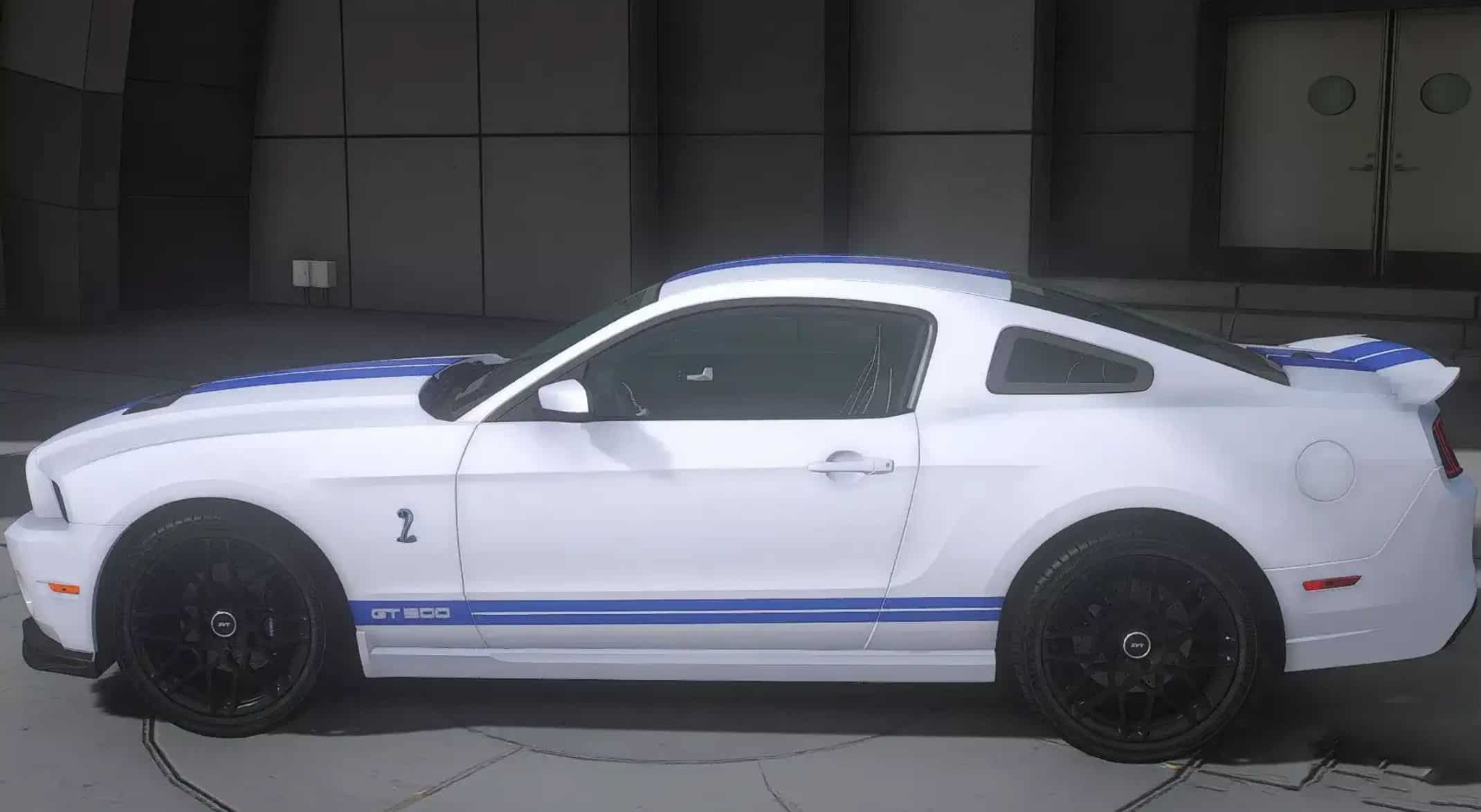 The iconic Shelby badge is placed on the front fenders, and the “GT500” lettering is featured on the side skirts.