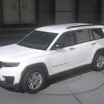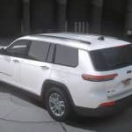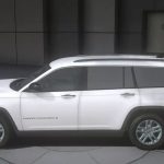 Sharp straight body lines and a high beltline create a solid and dynamic silhouette. The white body color is complemented by black elements such as mirrors, moldings, and fender flares, emphasizing contrast and modernity. Large wheel arches with plastic cladding underscore the SUV’s off-road character. Silver roof rails add practicality and highlight the status of the vehicle.