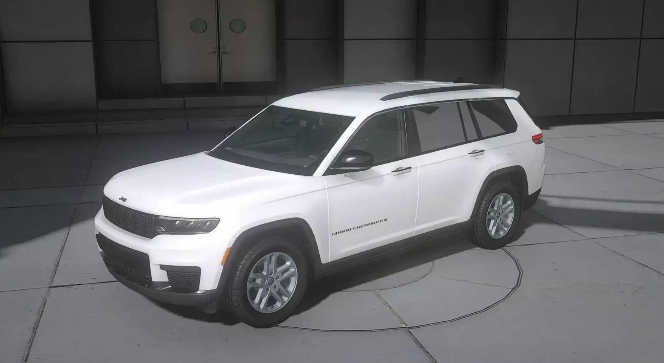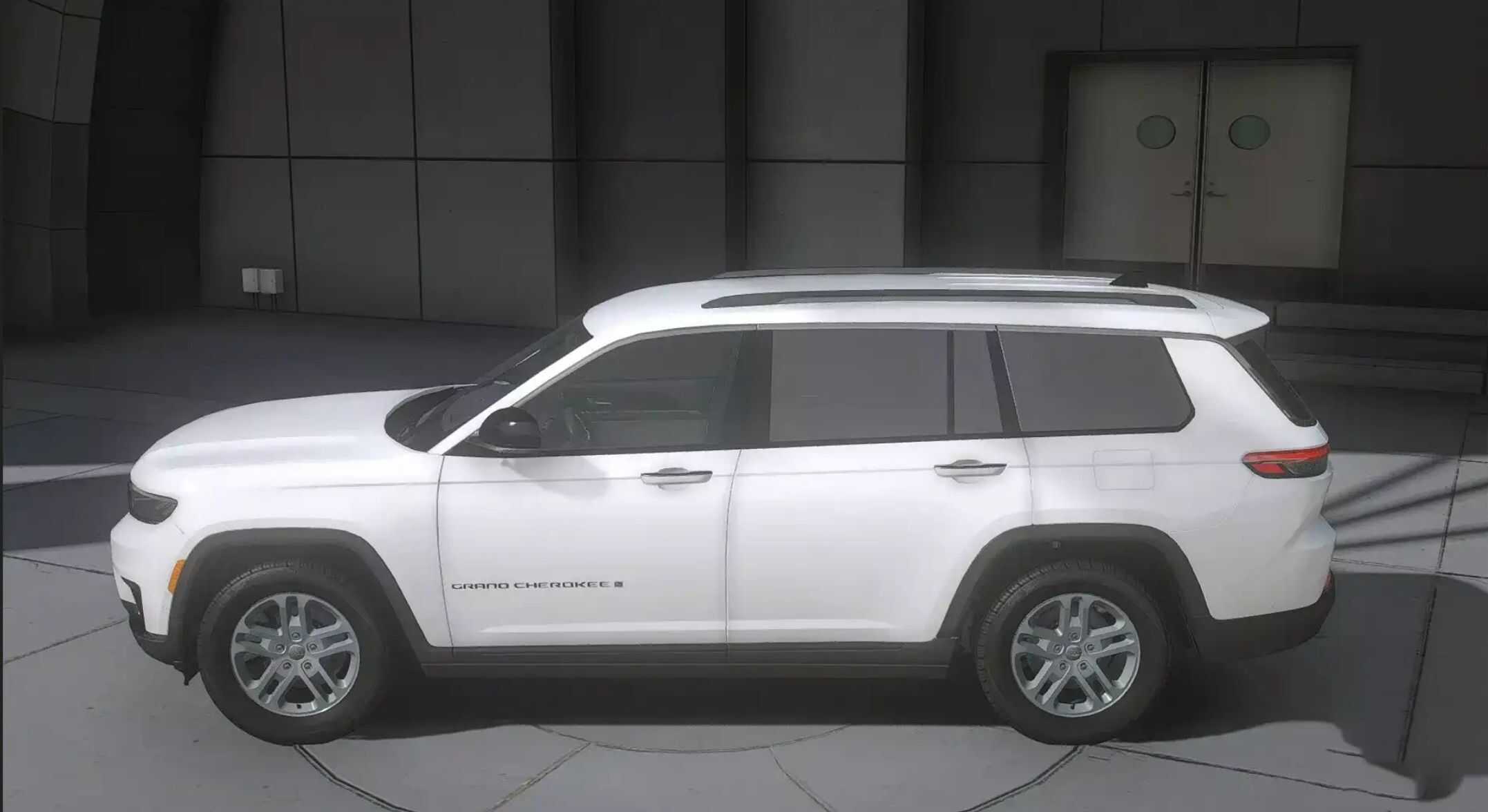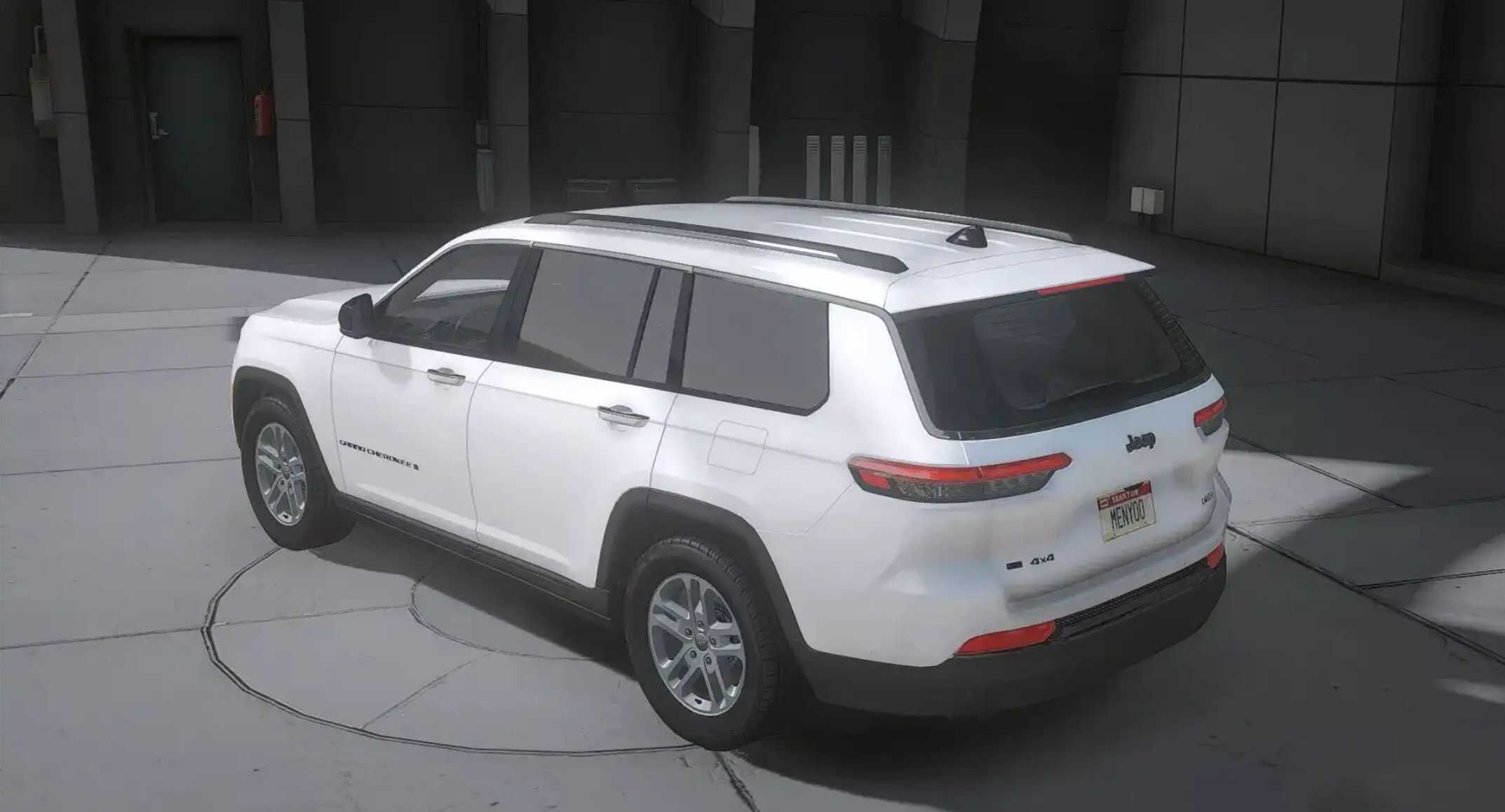 Narrow horizontal LED taillights give the rear a modern and clean look. The large Jeep badge and model designation emphasize its connection to the legendary brand. The massive rear bumper with a black lower insert and integrated protection completes the image of a reliable and stylish SUV. A small roof spoiler adds dynamic lines to the silhouette and improves aerodynamic performance.