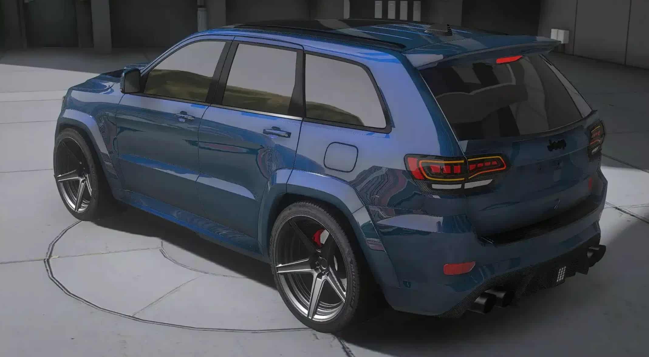 – An aggressive hood with a massive air intake emphasizes the sporty character of the Jeep Grand Cherokee Demonhawk.