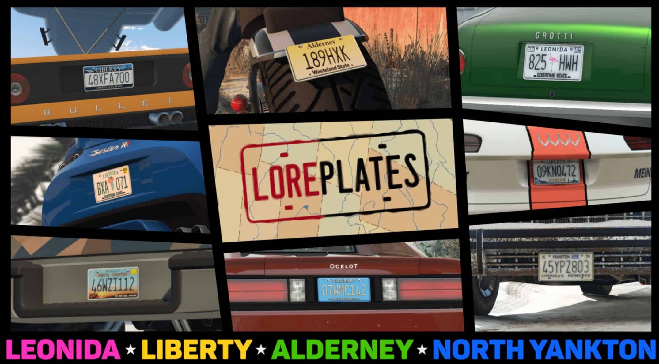 The default San Andreas license plates in GTAV are based on the standard issue California plates from the past sixty years. LorePlates is a collection of additional license plates from the same timespan, for the four other fictional states in the GTA Universe: Leonida, Liberty, Alderney, and North Yankton. (based on Florida, New York, New Jersey, and North Dakota respectively). Each plate in this pack is a painstaking recreation of a real-life counterpart, combined with a conscious effort to emulate Rockstar’s satire. If Leonida, Liberty, Alderney, and North Yankton were fully accessible in GTAV, then LorePlates is an estimation of the kind of plates Rockstar would make for these regions.