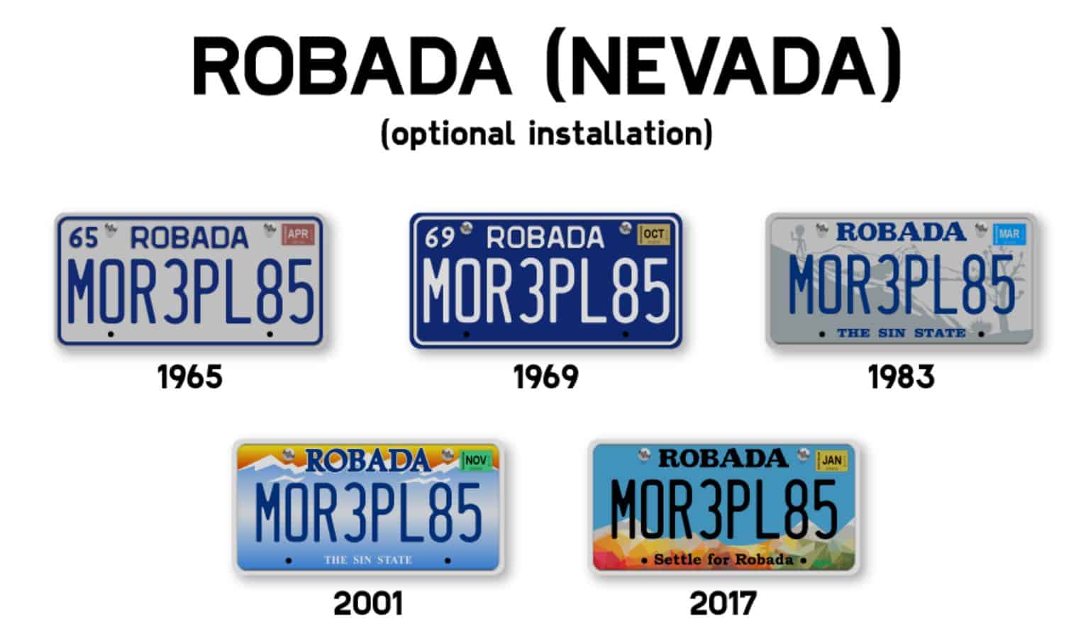 – Five “Robada” plates based off Nevada plates. Robada is not Rockstar canon but is a widely accepted among fans as a name for lore Nevada. (v 2.2)