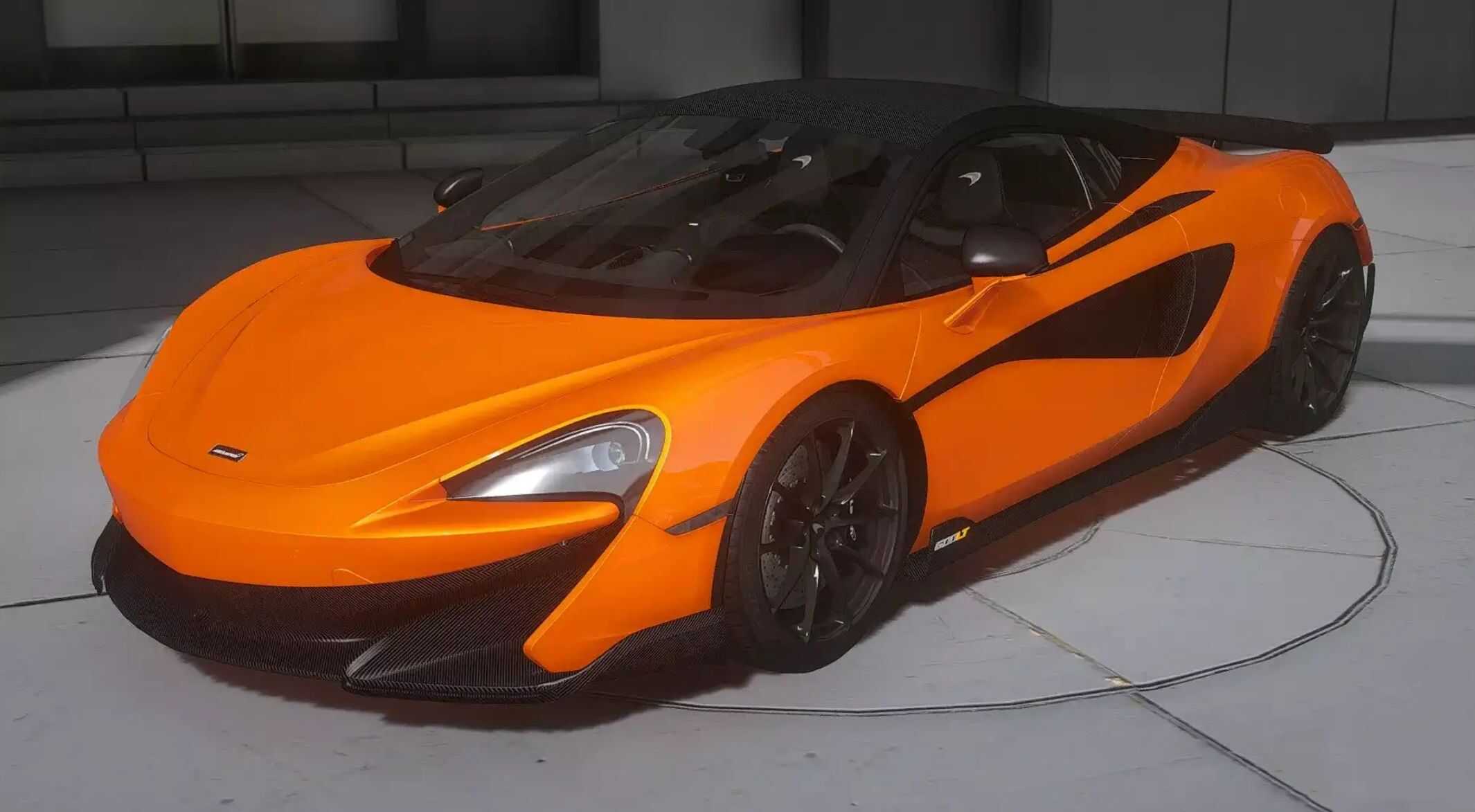 Black multi-spoke alloy wheels with low-profile tires emphasize the racing nature of the 600LT.