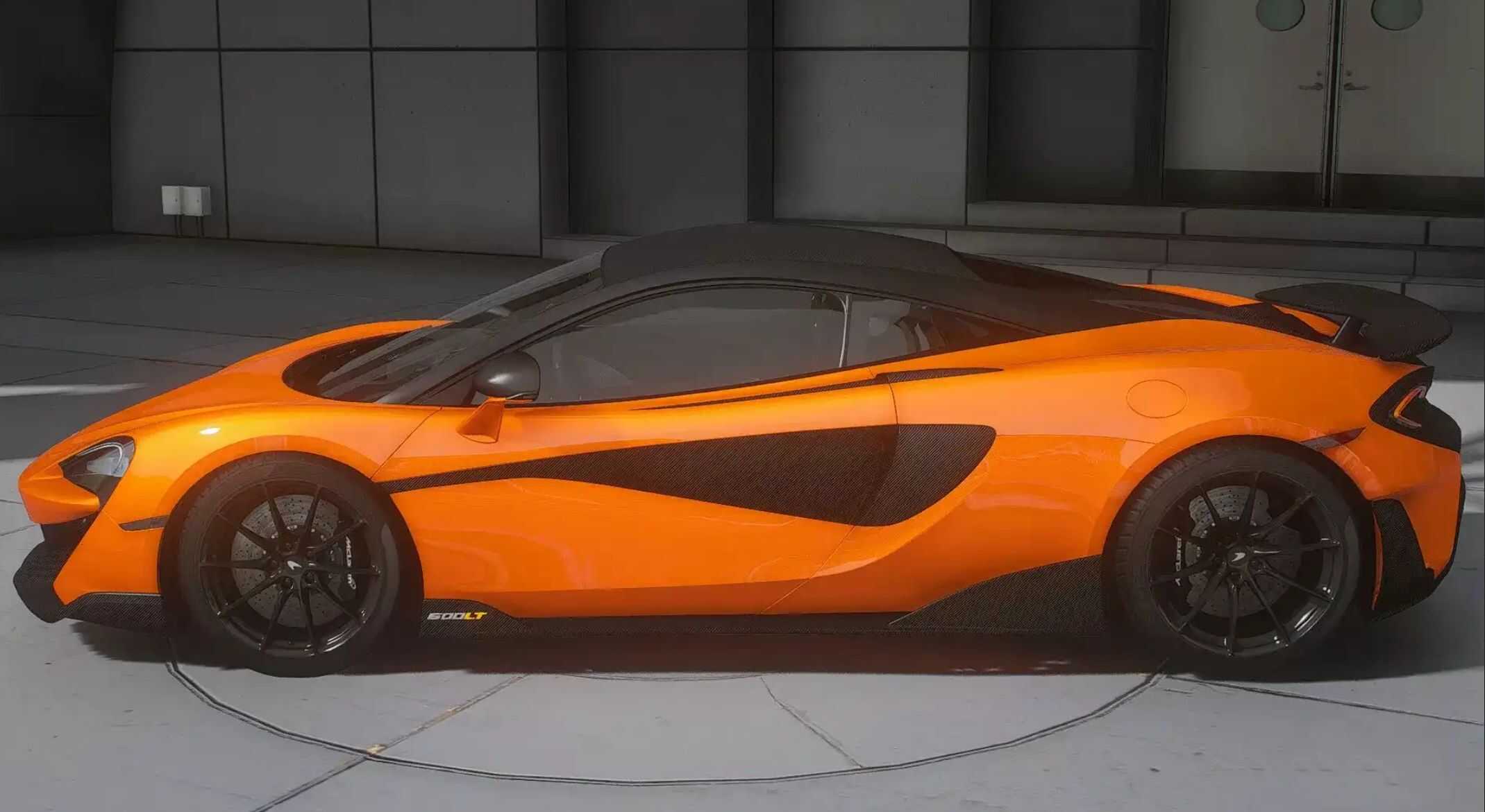 Black multi-spoke alloy wheels with low-profile tires emphasize the racing nature of the 600LT.
