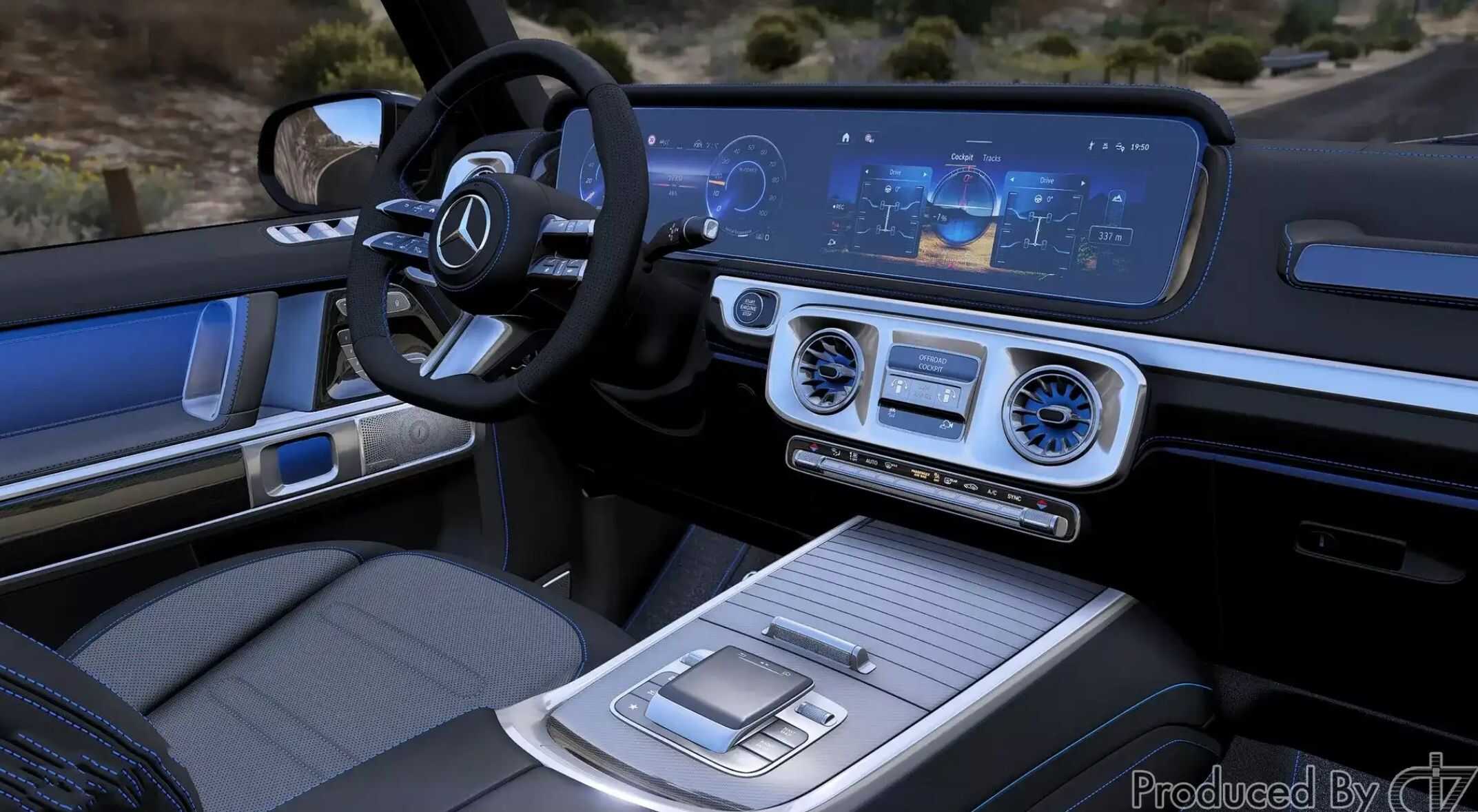 – Classic body shape with a flat roofline and large glass surfaces preserves the recognizable G-Class silhouette.