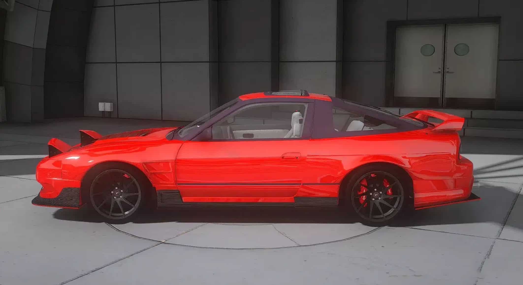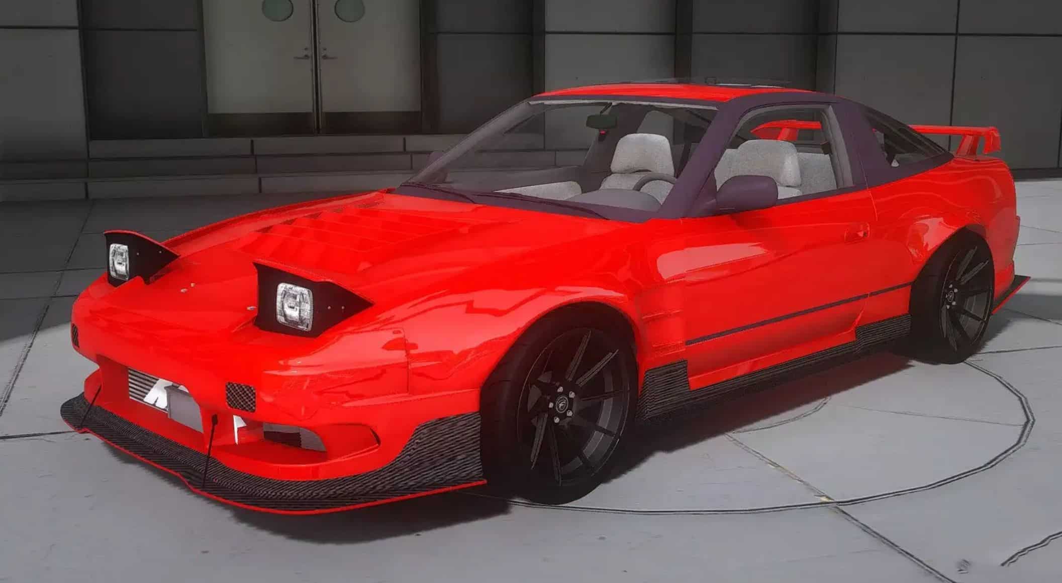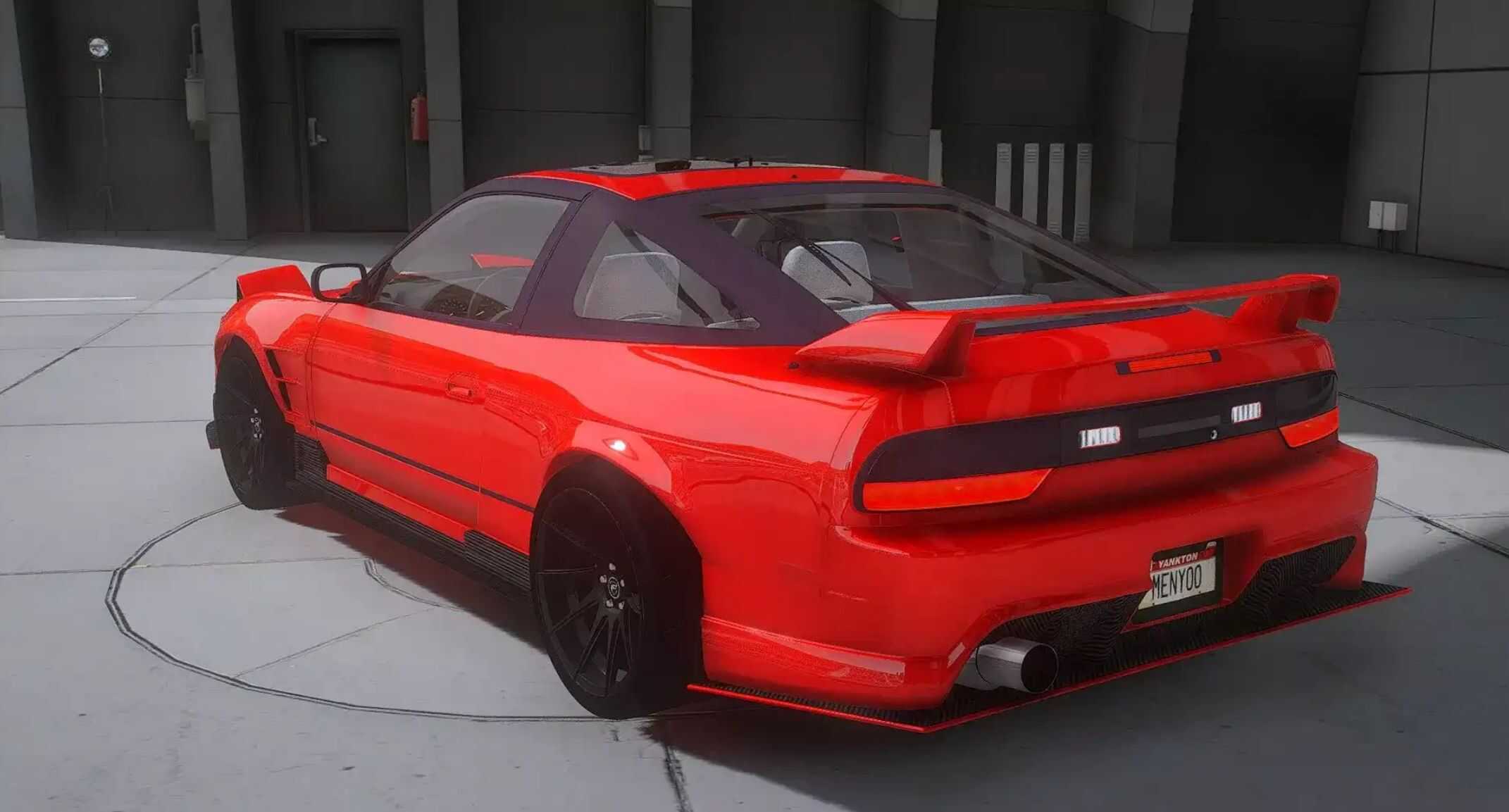 – A carbon diffuser and massive exhaust tip enhance the sporty style and emphasize the power of the Nissan 180SX.