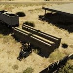A variety of construction vehicles, including dump trucks and bulldozers, have been added around the motel site to enhance the realism and activity of the scene.