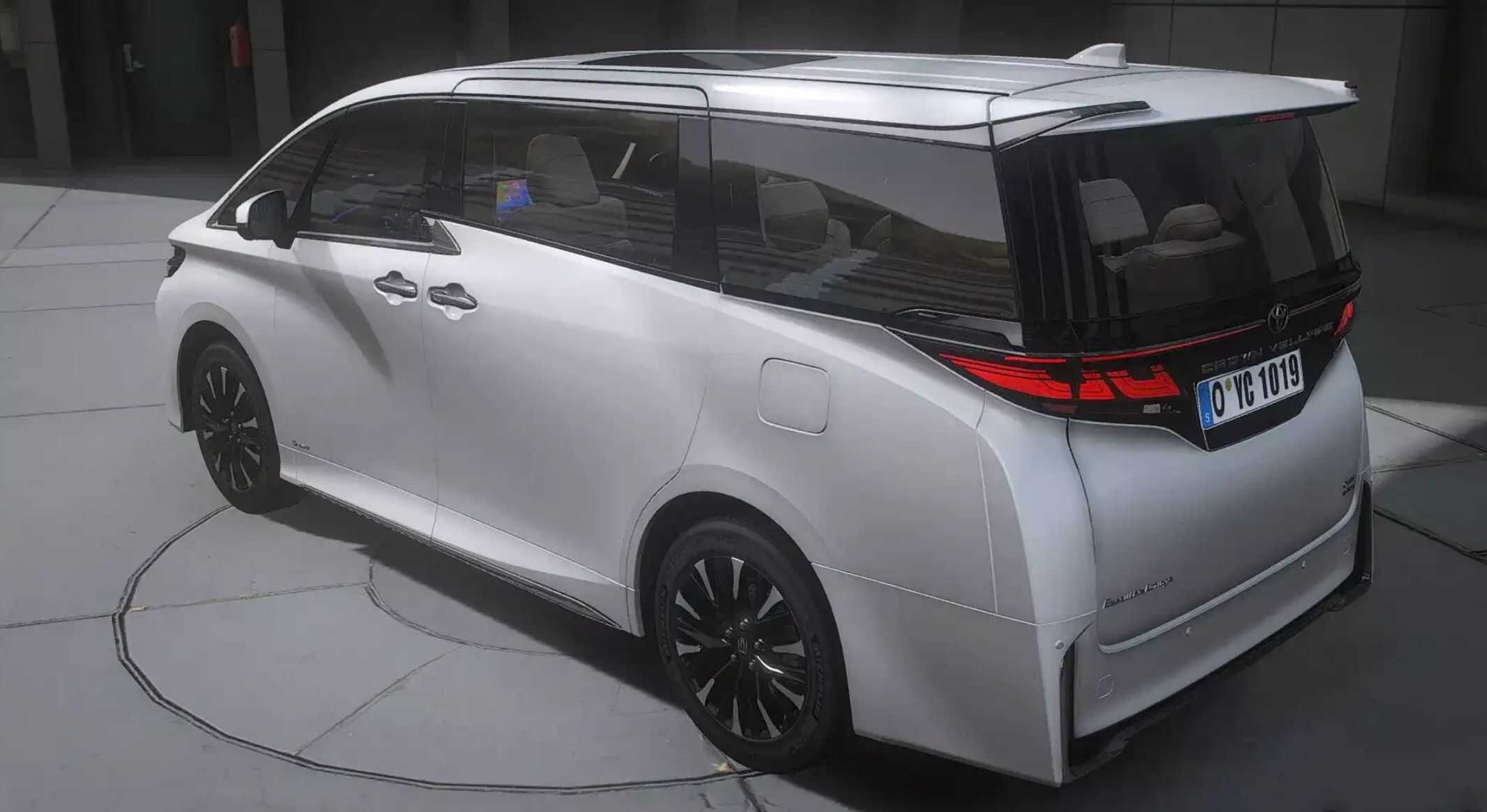 – A massive multi-layered grille with horizontal black slats and the signature Crown emblem emphasizes the status and premium character of the minivan.