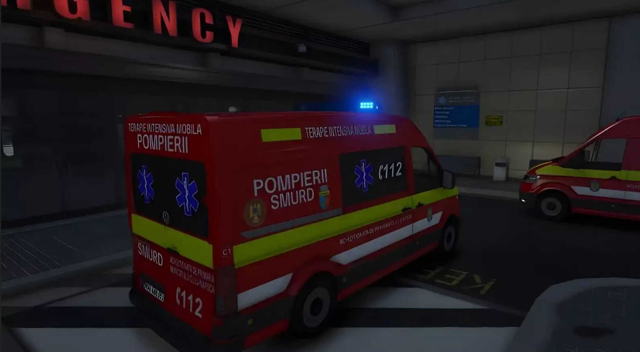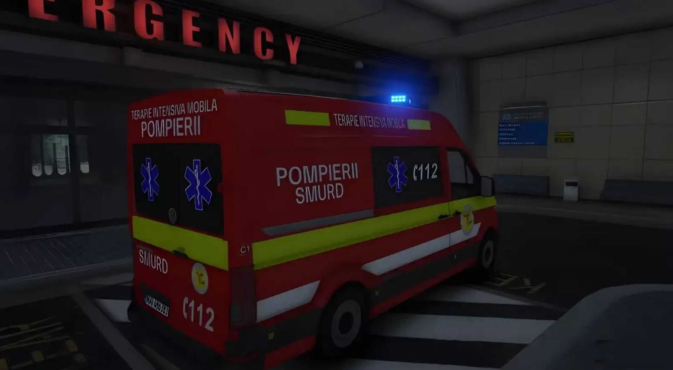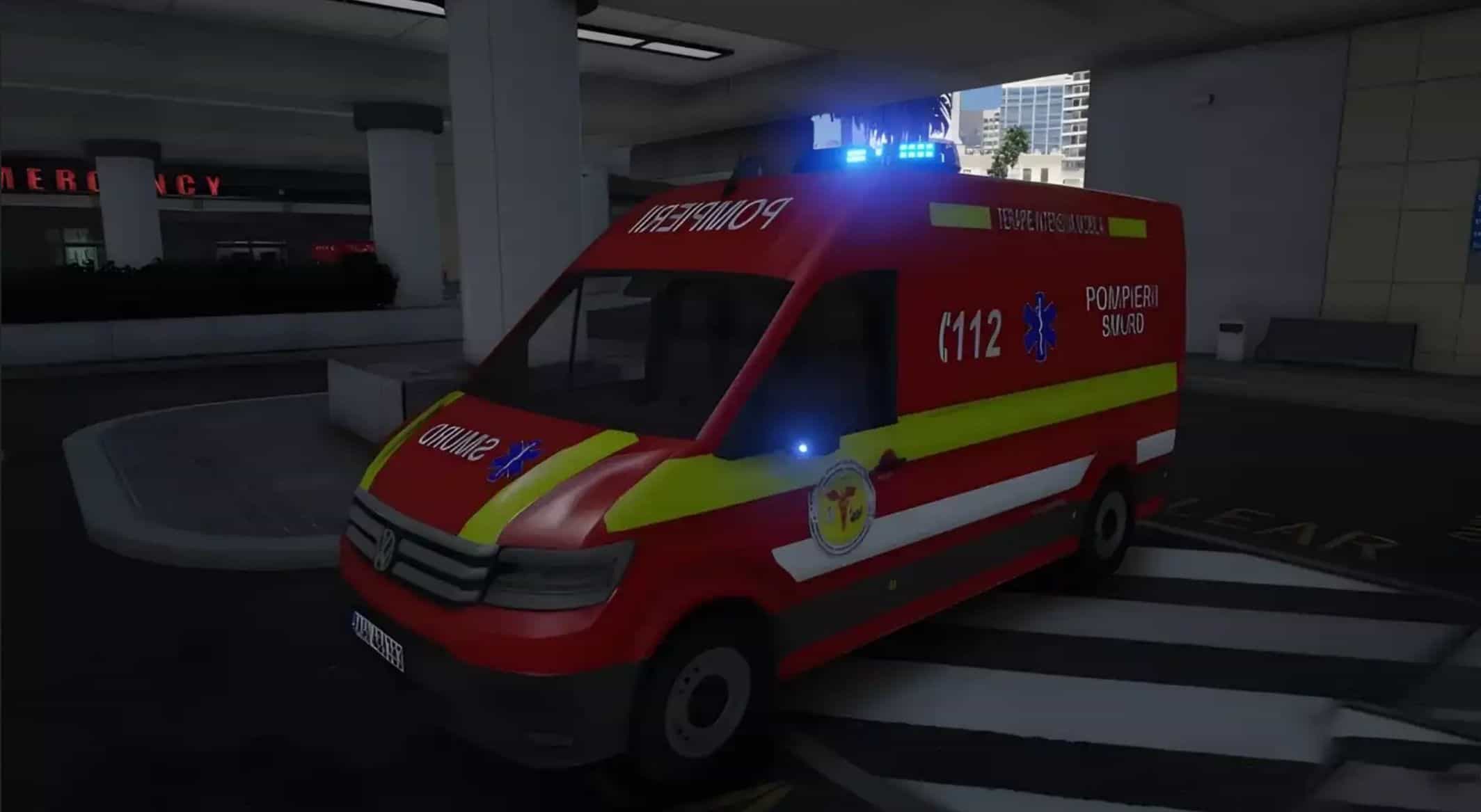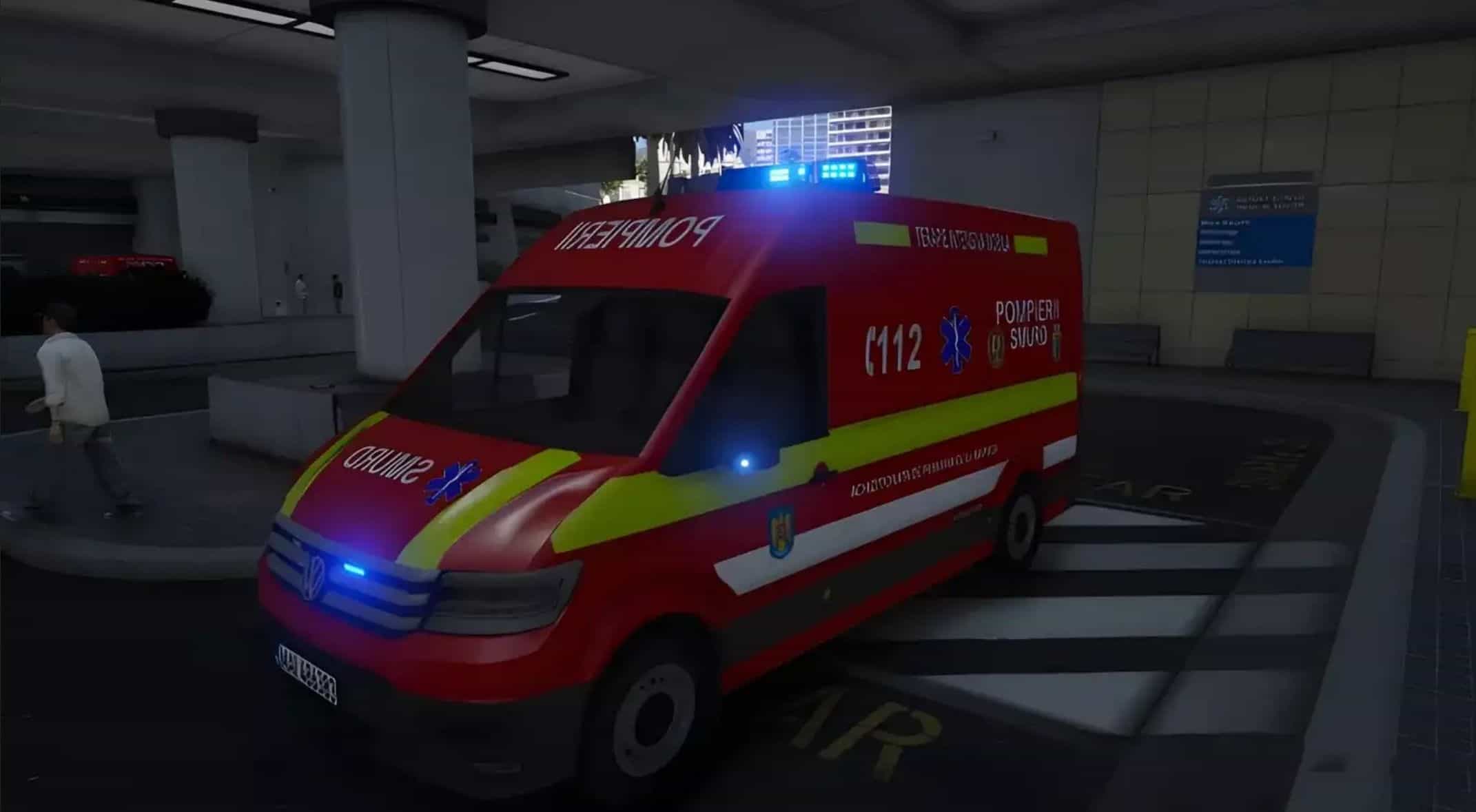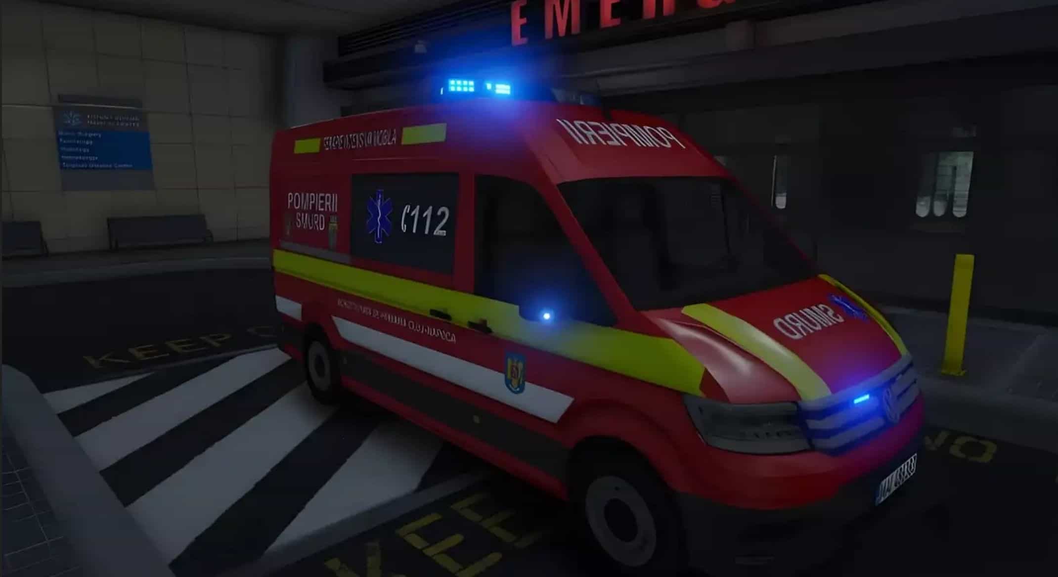 Volkswagen Crafter Smurd is a specialized ambulance vehicle used in emergencies for rapid transportation of casualties. It is equipped with modern medical equipment to provide first aid directly at the scene of the incident.